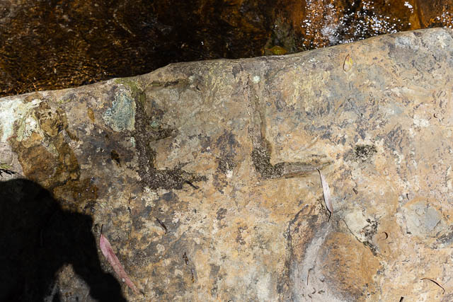 on this ledge, we looked for an found some old graffiti. Chiselled into the rock were three names. This one is (something) “Rienits” –