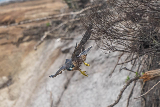 Then the adult male flew past at high sped and dived into the rifle range area. A minute or two later it appeared with prey.