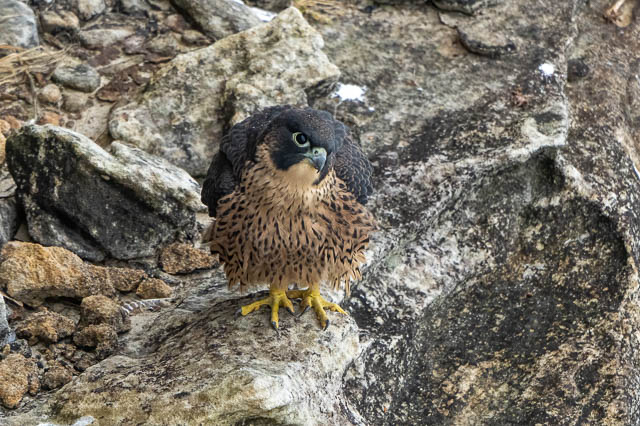 At the same time, the adult male also arrived and perched on one of his usual ledges.