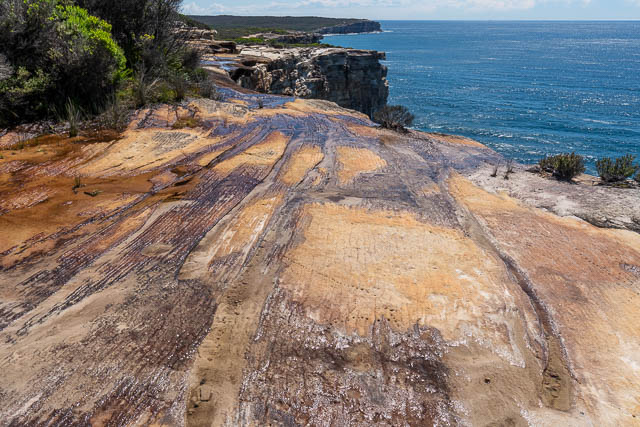 We arrived at the coastal cliffs. We examined the Aboriginal engravings and tried to work out what the various series of dots mean. They seem fairly abstract.