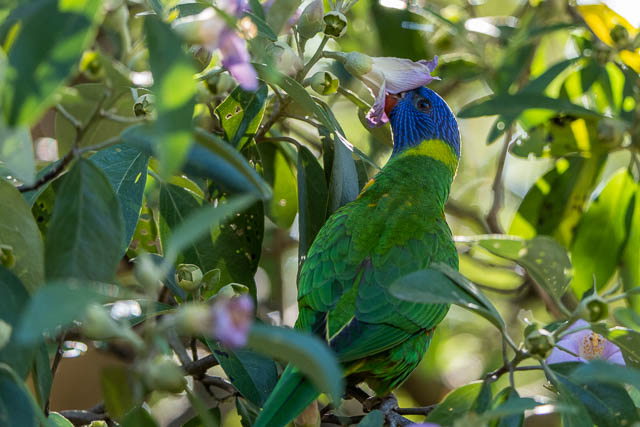 Here is one of the Rainbow Lorikeets enjoying the nectar of the Norfolk Island Hibiscus –