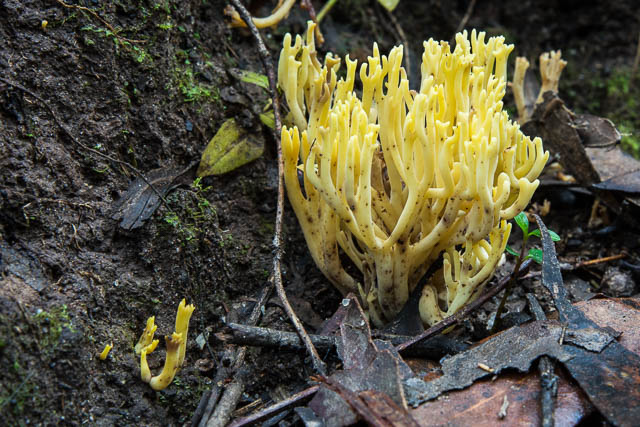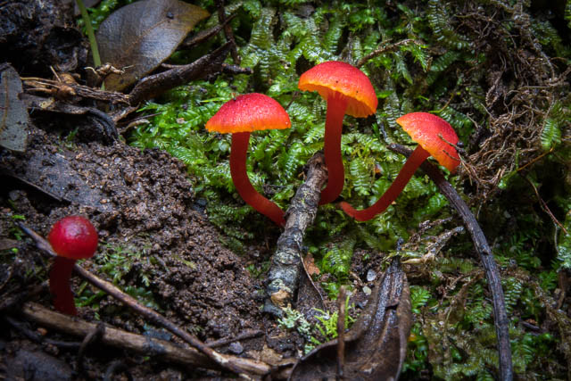 It was from there that our pace slowed drown. As we continued down the track towards Junction Rock – we noticed lots of fungi out – and it was interesting, colourful fungi too. So that meant lots of photo stops. I had not bothered to bring a macro lens, and had to make do with a standard lens with a screw on +3 diopter close up filter. It was better than nothing. We also managed to find quite a few orchids in flower too.