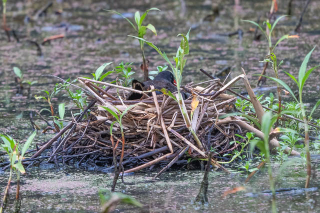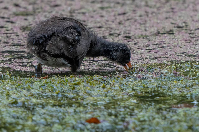 The one above is sitting on a nest. There we some chicks and juveniles in the lower pond –