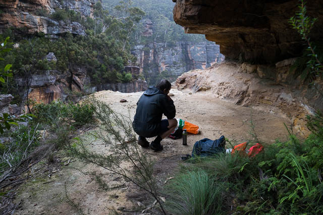 I headed up the mountains with Bob to Medlow Bath. Bob was keen to check out some of the old walking tracks behind the Hydro Majestic Hotel. I had been on those tracks once before and I too was keen to visit some of the places that we missed on that earlierĀ trip – in particular the Colleseum (this is the spelling on the topo map), a large cave below the lower cliff line near the Hotel.