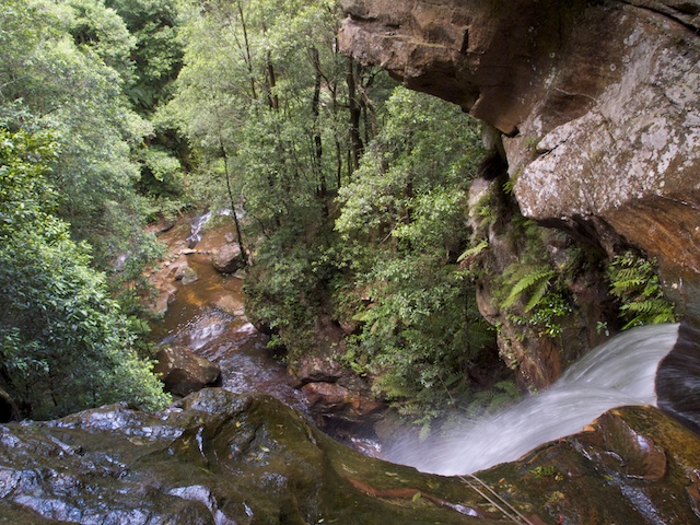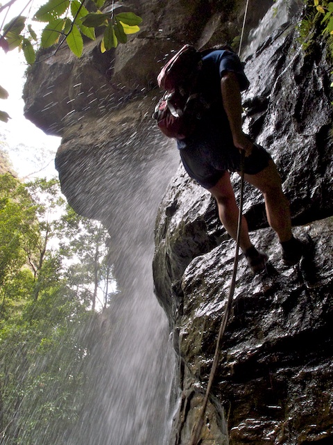 The canyon is nice – and for once the water seemed quite clean – but it is over far too soon. After recent rain – the main waterfall – Empress Falls was going quite nicely – but both of us finished our abseils on a side ledge rather than go all the way down to the pool.