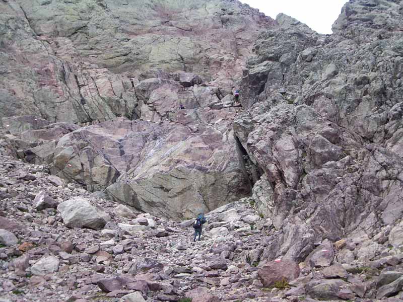 Above - Daywalkers climbing up to Bocca Minuta from the Ravin de Stranciaccone.