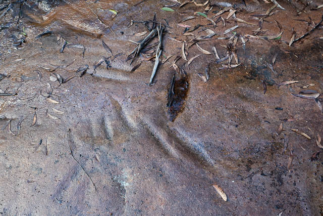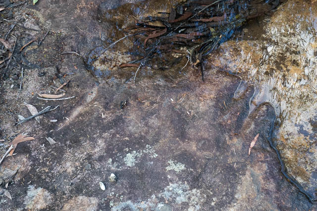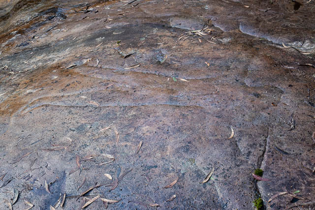 We checked out a few rock platforms near the fire road. One seemed to have small Aboriginal engraving of an Emu footprint.
