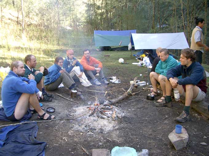 Breakfast at the campfire - Dave L, Uli and James