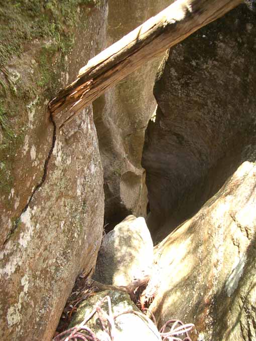 Above - Don prepares to abseil down a narrow gap between chockstones