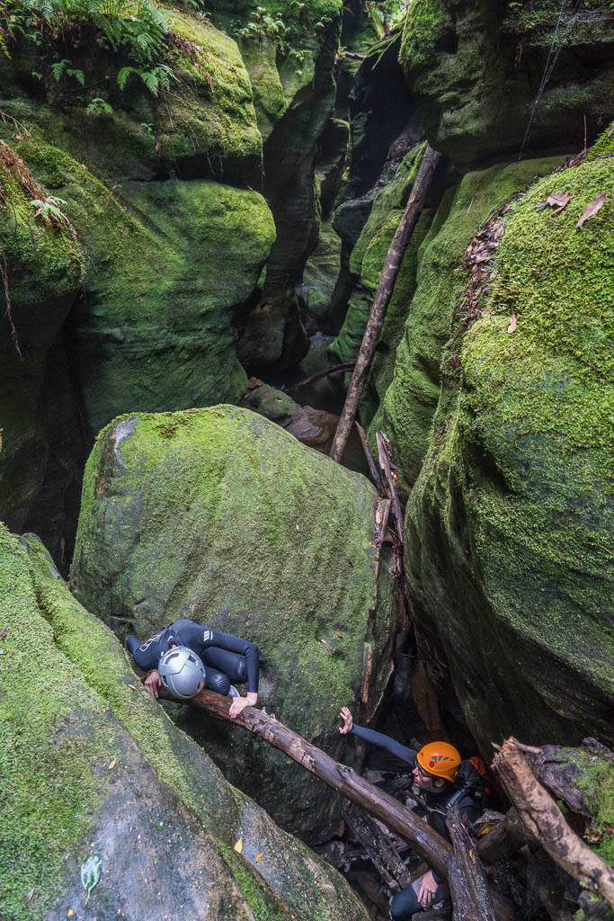 Above - Clambering down these boulders is one of two tricky sections