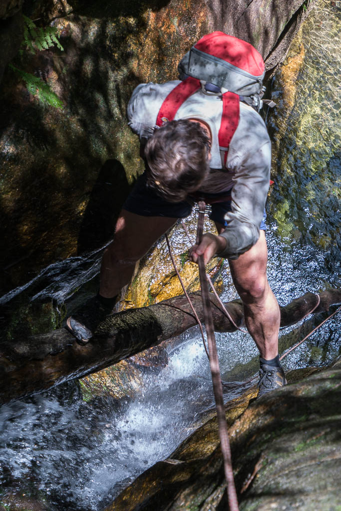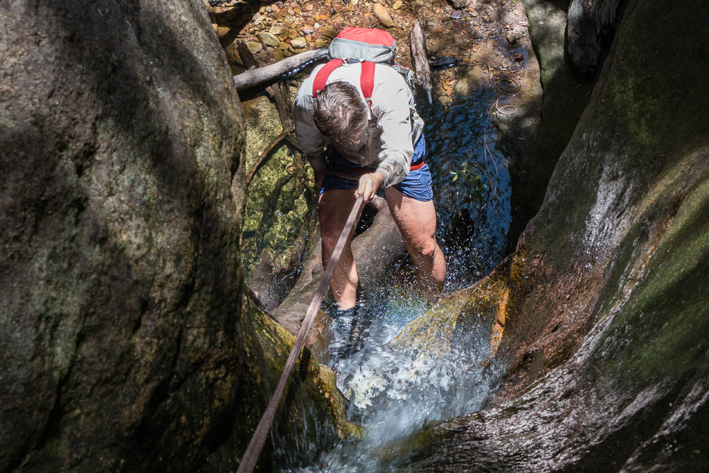 Above - Bob on the second abseil of our canyon
