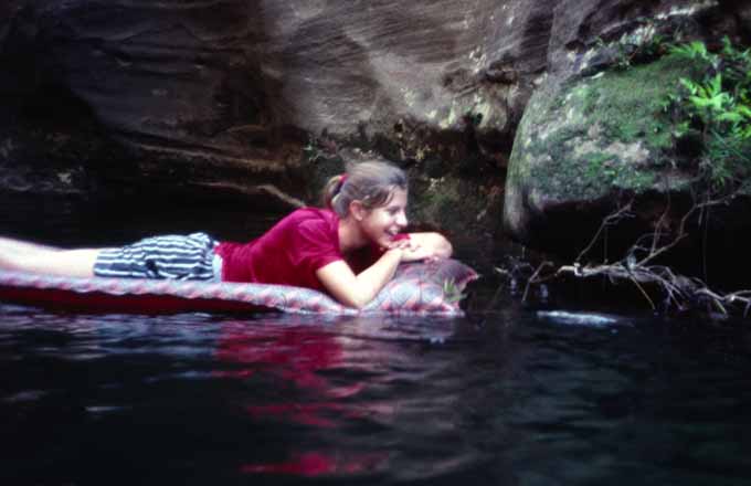 On this trip we did the Tourist Section - and we saw a platypus swimming through one of the pools. It swam around our lilos for about 10 minutes - and did not seem too scared of us. Quite remarkable! On a much earlier trip (1970's) - I saw a platypus in October Creek (one of the entry routes into Clatterteeth Canyon) - but it quickly vanished from view.