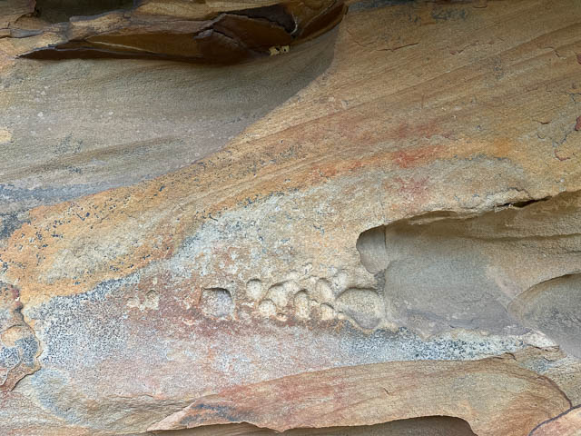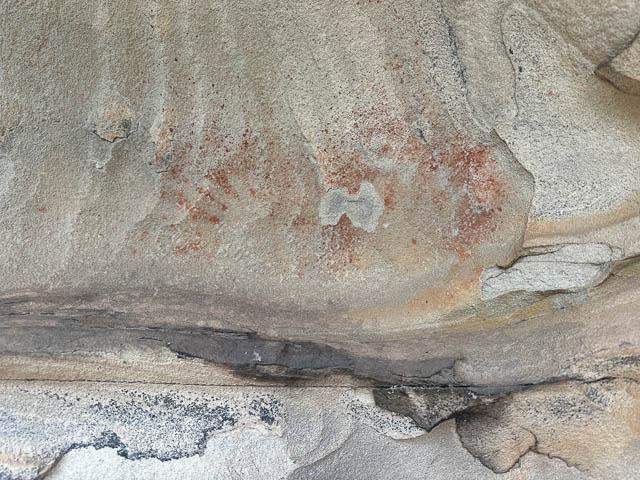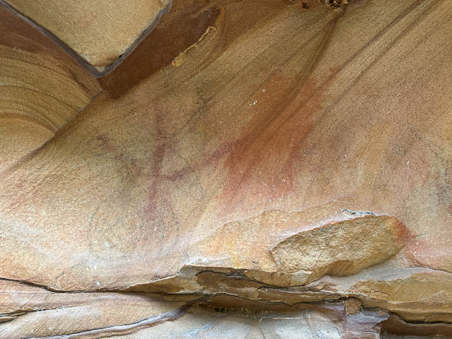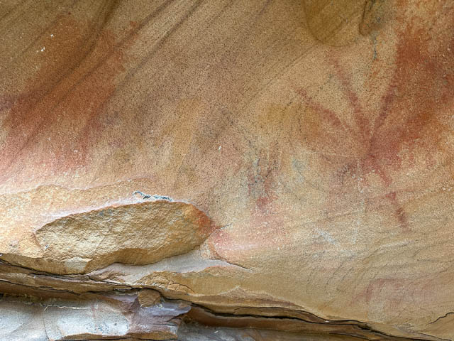 This was another quite small cave, further along the same cliffline. Even though it was small. it was full of faint art. Most of it in charcoal.