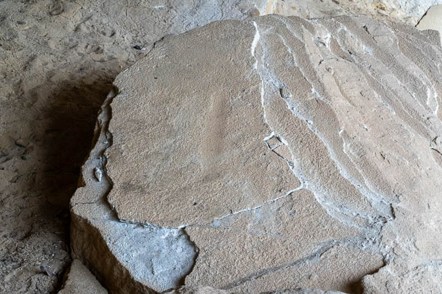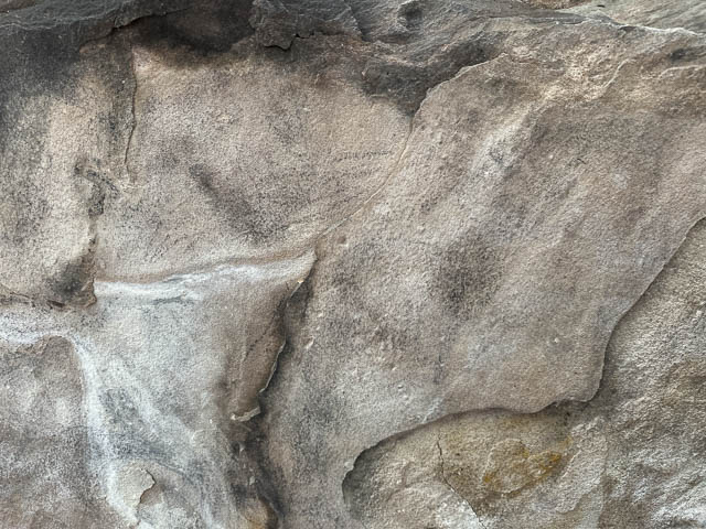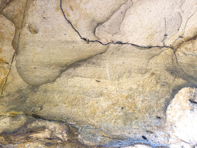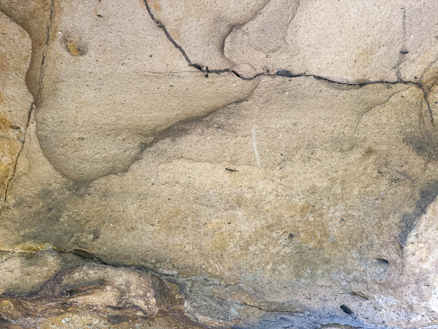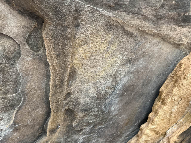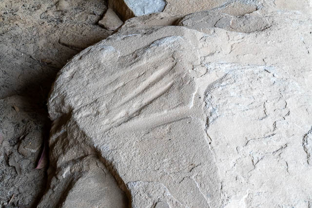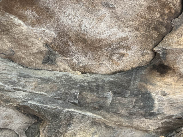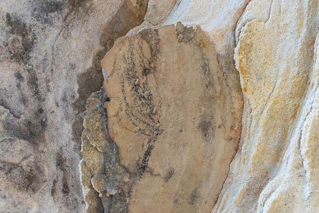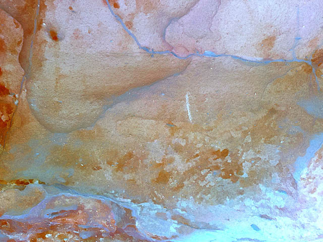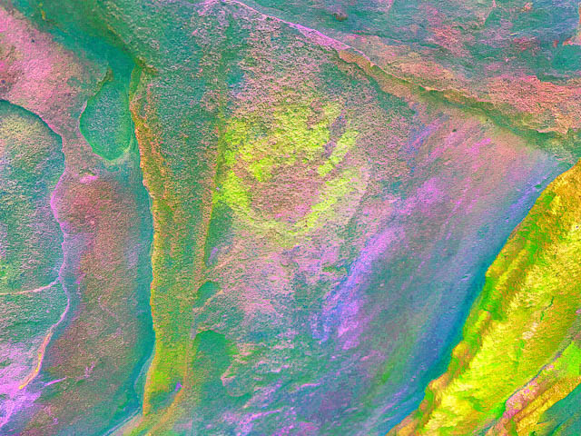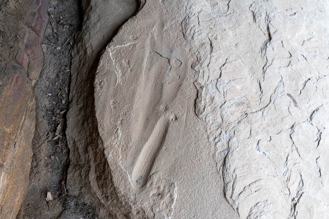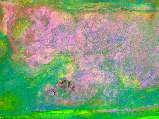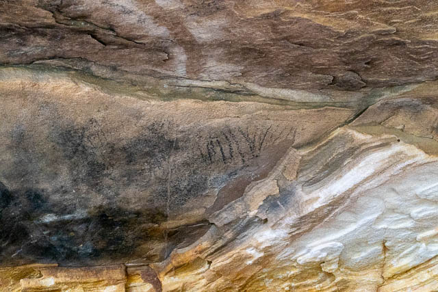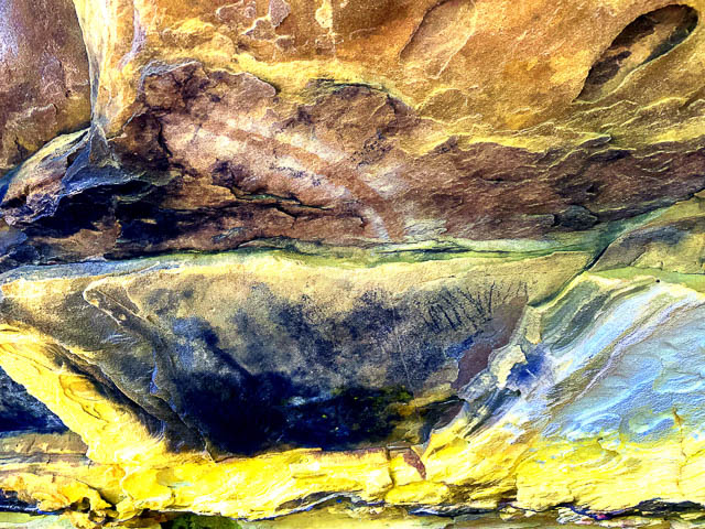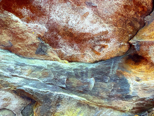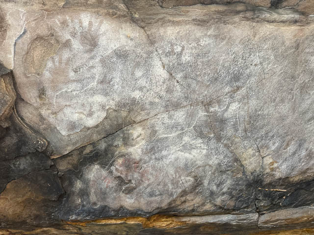 In the above photo, I think I can discern a faint white ochre hand stencil just below the vertical white line.