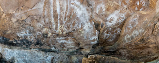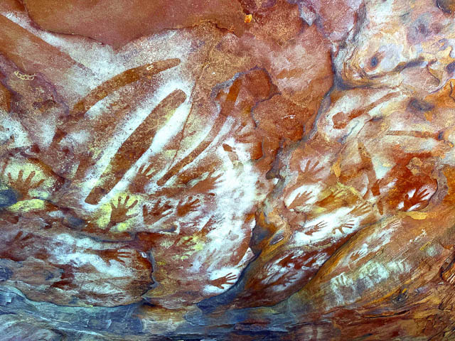 In the photos below, you can see some red ochre hand stencils in the enhanced version.