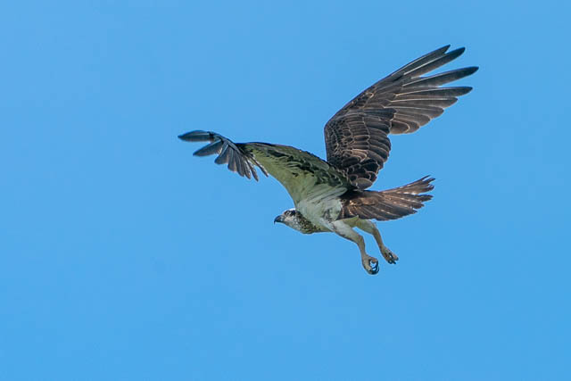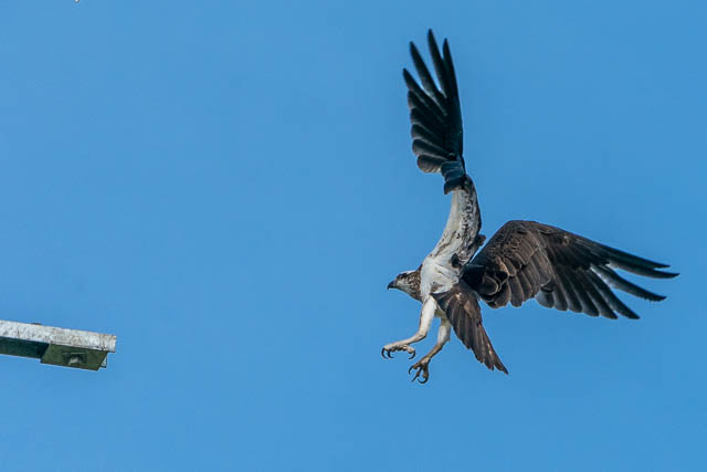 I caught a B-line bus to Warriewood and walked to one of the sporting fields near Narrabeen Lagoon where I had seen an Osprey nest on previous visits. As soon as I arrived, I could see at least one fo the birds was there. And it was active – going for short flights. I was able to get some reasonable photos.