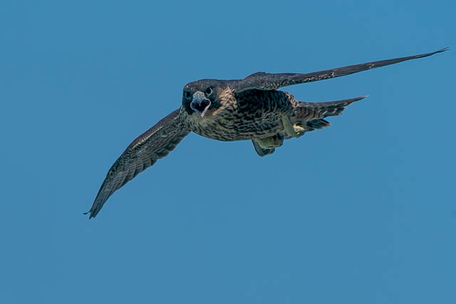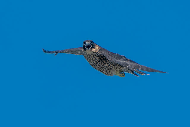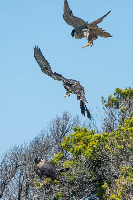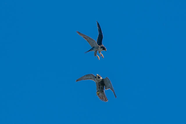 The presence of the Ospreys must have been spotted also by the parent Peregrine Falcon who was on guard duty.