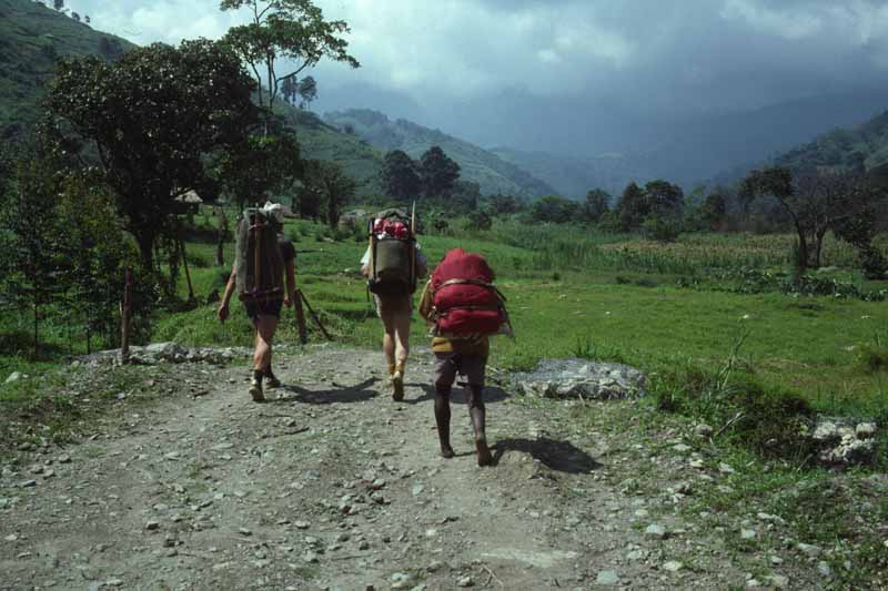 Above - Bob and Tony and one of our porters heading up into the hills