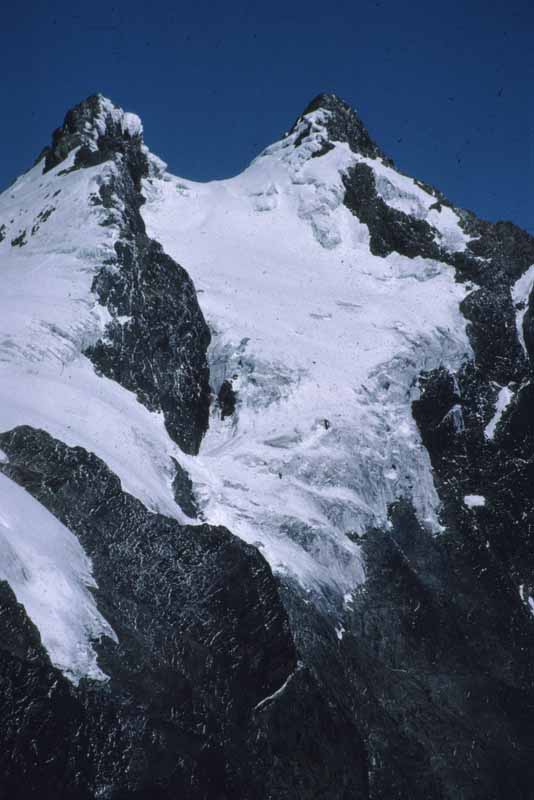 Above - Looking at the summits of Mt Stanley - Allesandra peak and, on