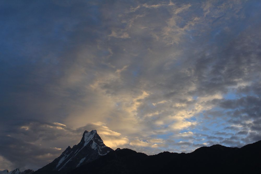 Above - sun on The Fish Tail and Annapurna 2