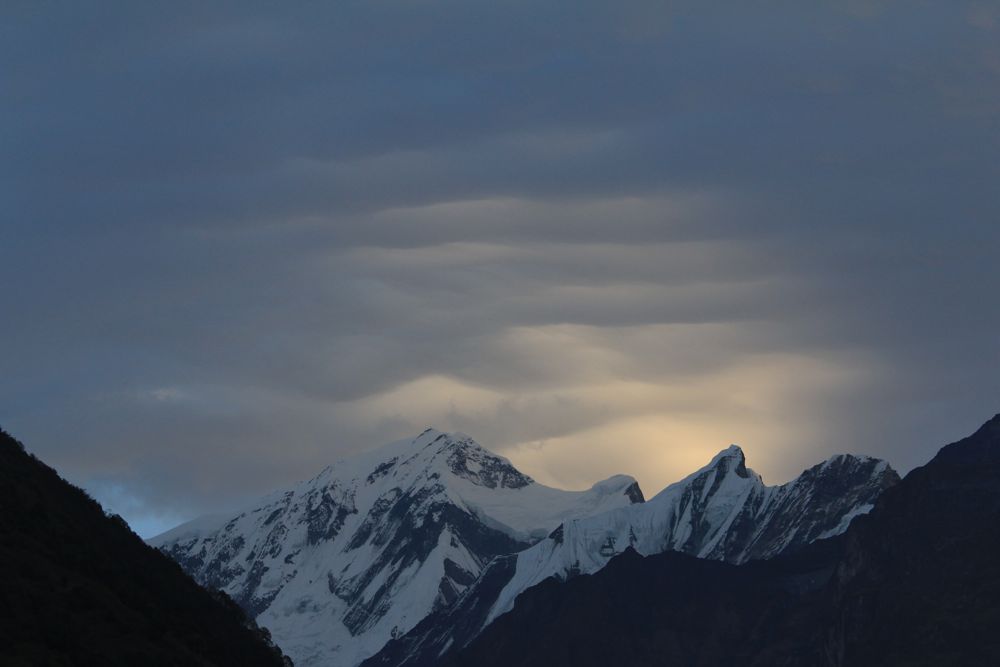 Above - first sun on Modi Peak