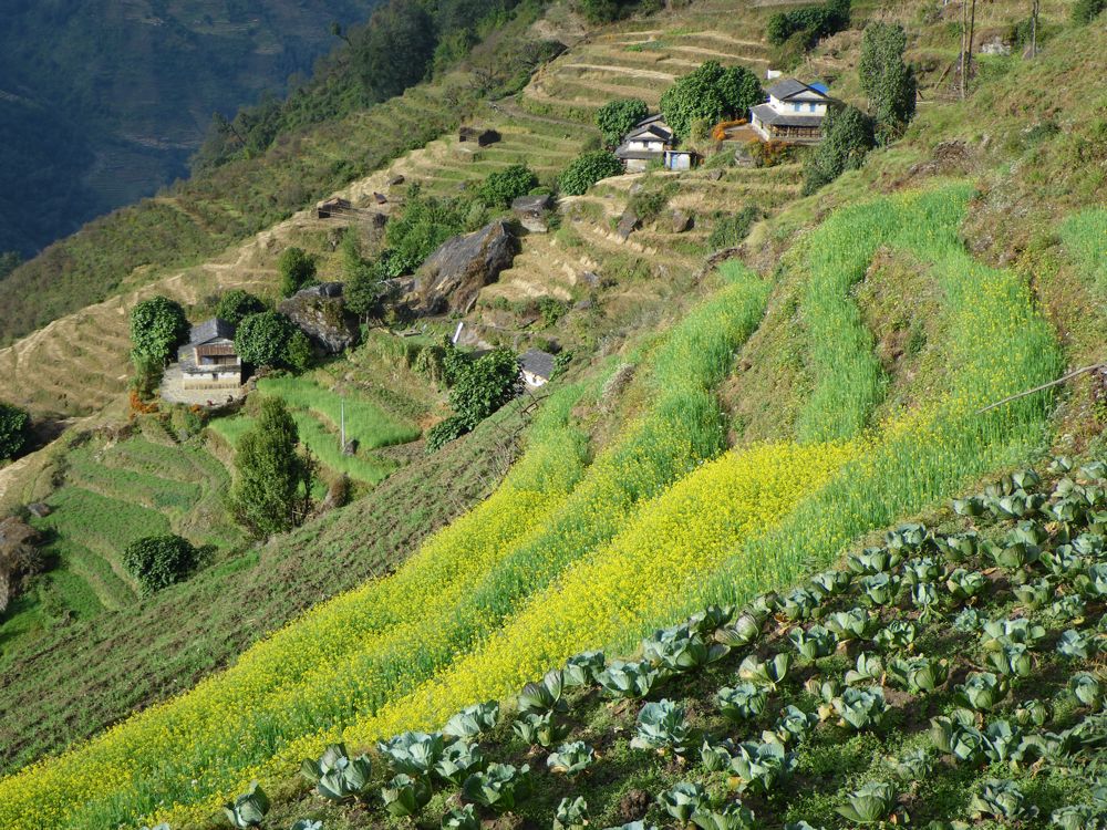 Above - terraces. The yellow flower is rape I think