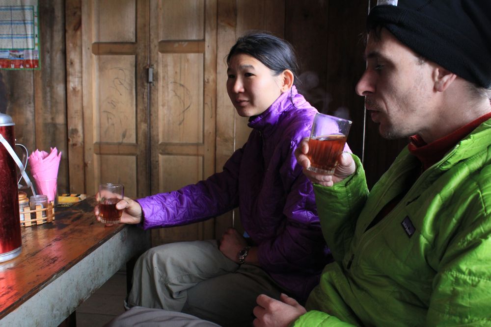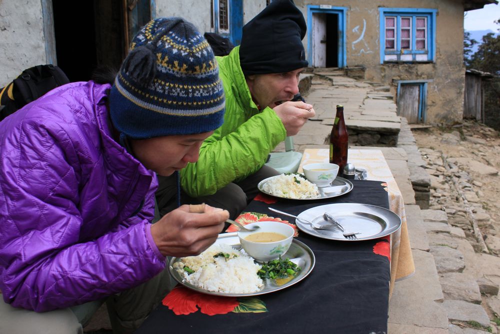Above - Chuin Nee and John enjoys Dal Bhat near Taktor