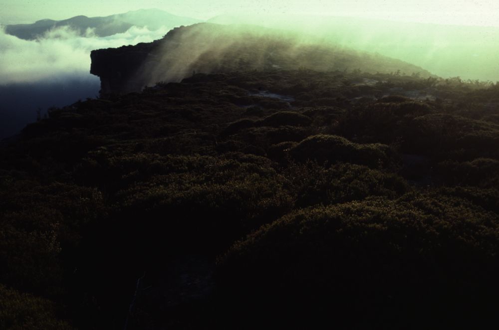 Above - Dusk - at the Walls. Morning mist shrouds the plateau.