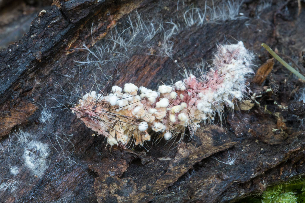 Above - A caterpillar infected with Beauveria bassiana (a