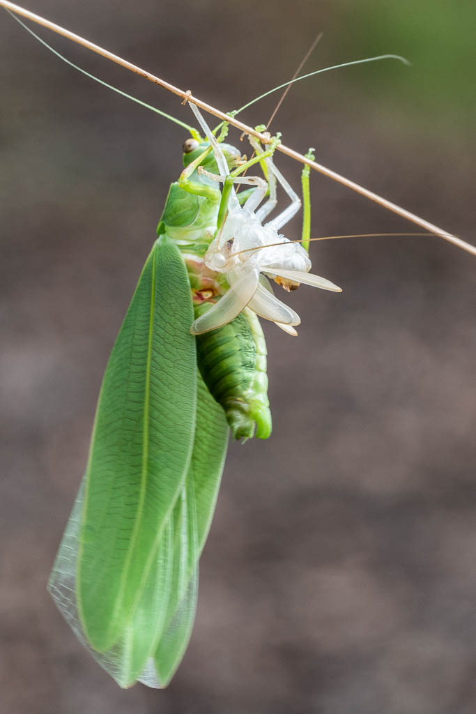Above - Katydid that has just moulted - with old shell