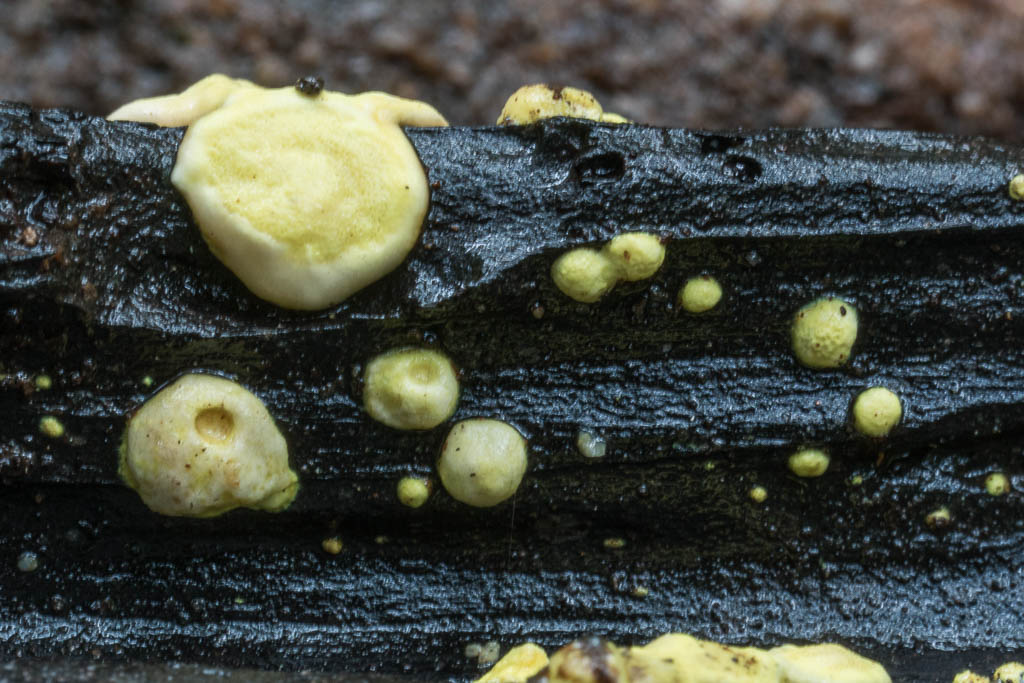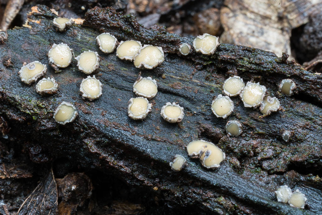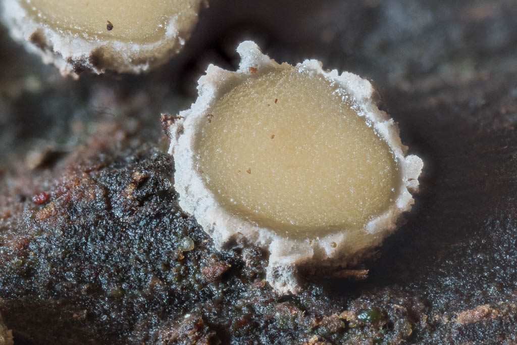 Above - Very tiny growing on wood. Perhaps Lamprospora sp.