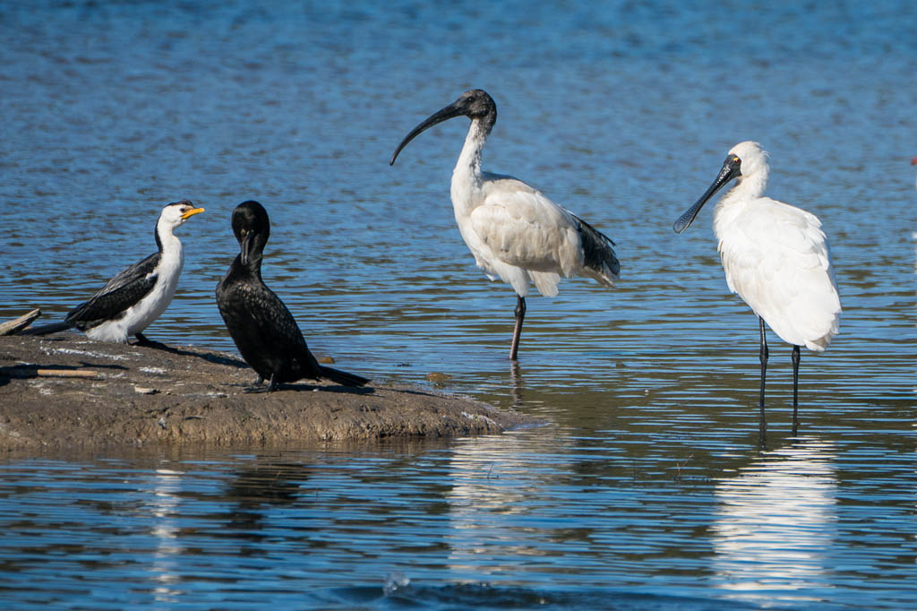 Above - Little Pied Cormorant, Little Black Cormorant, Sacred Ibis,