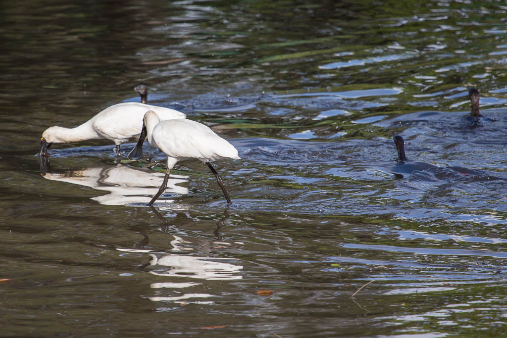 Above - Royal Spoonbills (Platalea regia) and Little Black