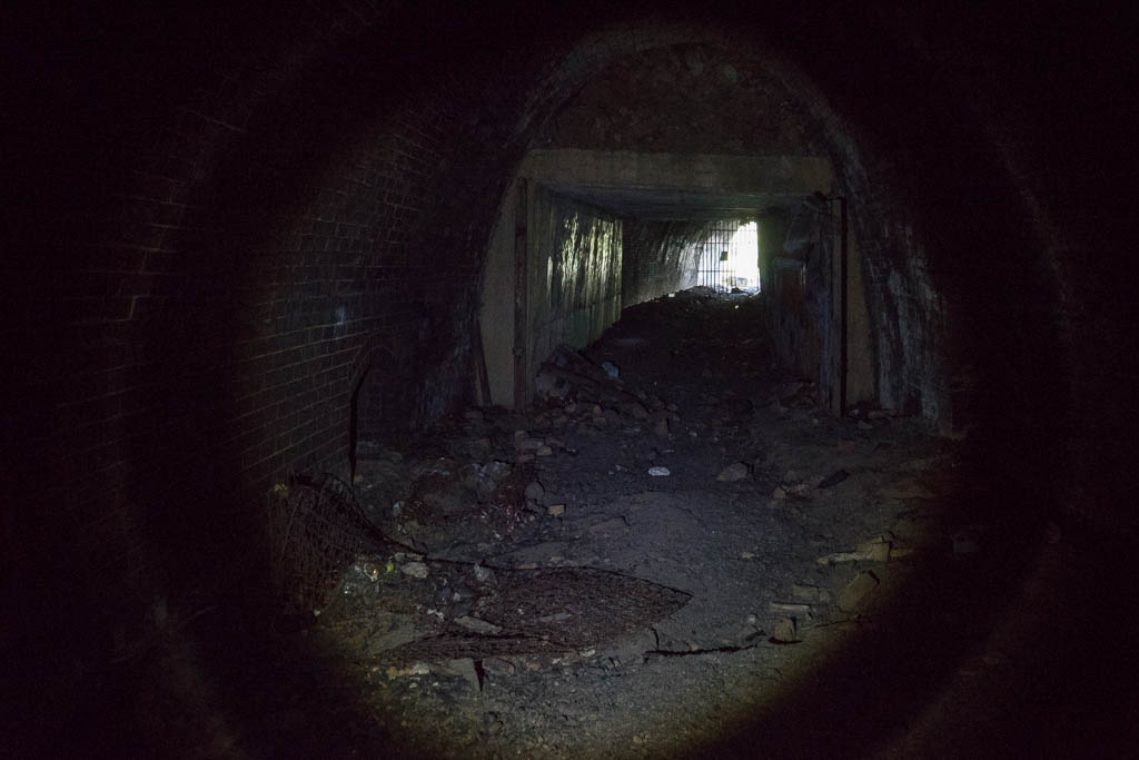 Above - Looking down the tunnel. The sandstone blocks cover a brick