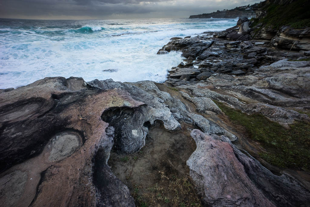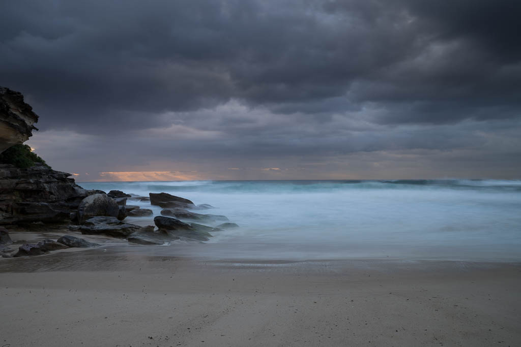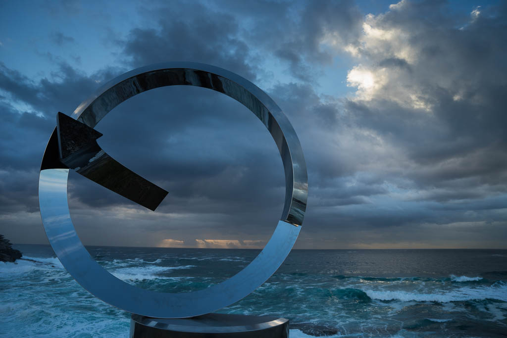 Above - Tamarama Beach at dawn. The loop like sculpture on the right