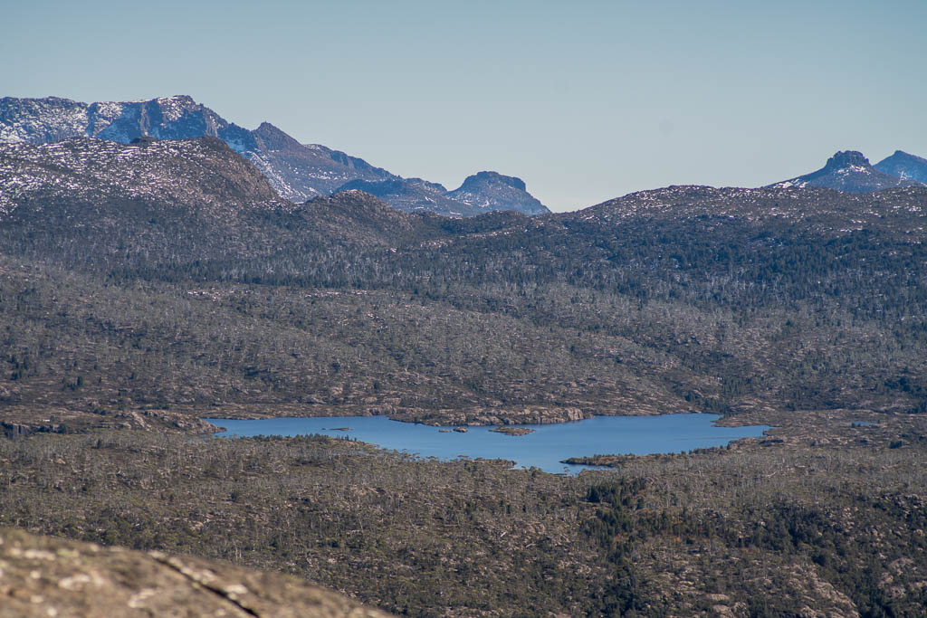 Above - Lake Myrtle and the peaks of The Reserve (Mt Gould to Cradle