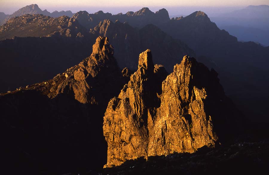Above - A number of peaks at dusk