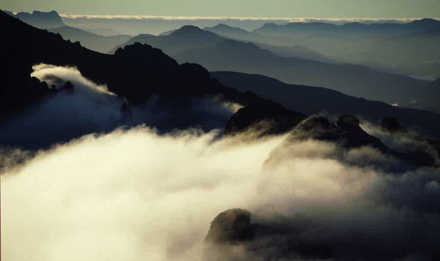 Above - Evening mist plays over the range