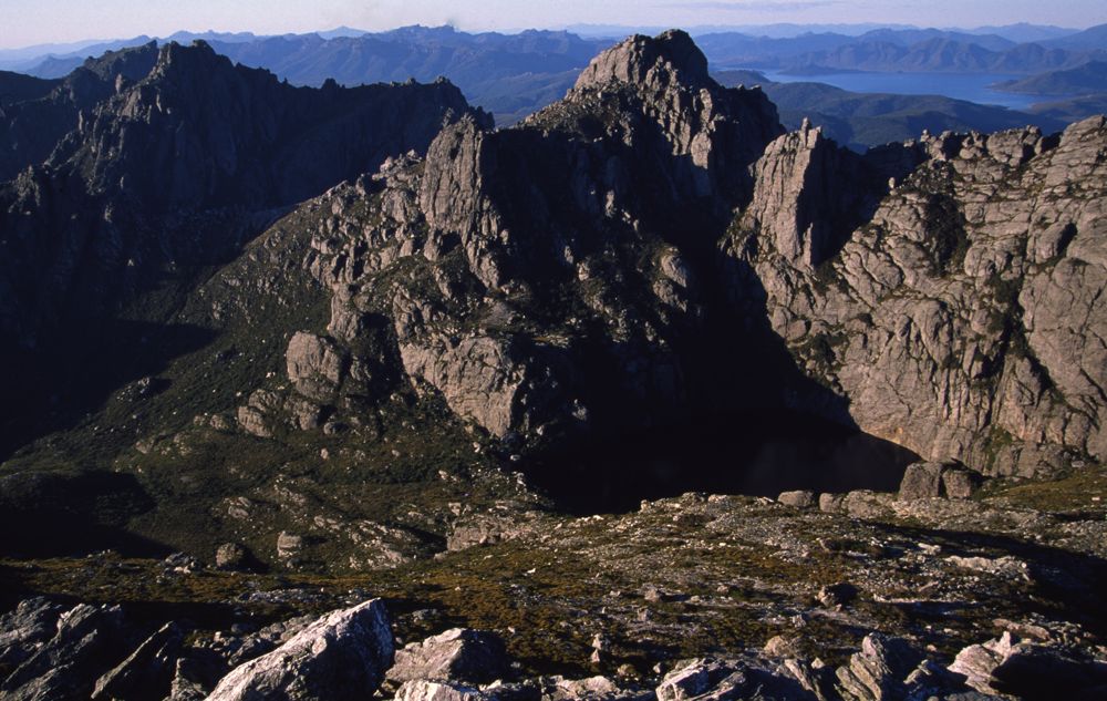 Above - Lake Oberon - with federation Peak - visible on the far right