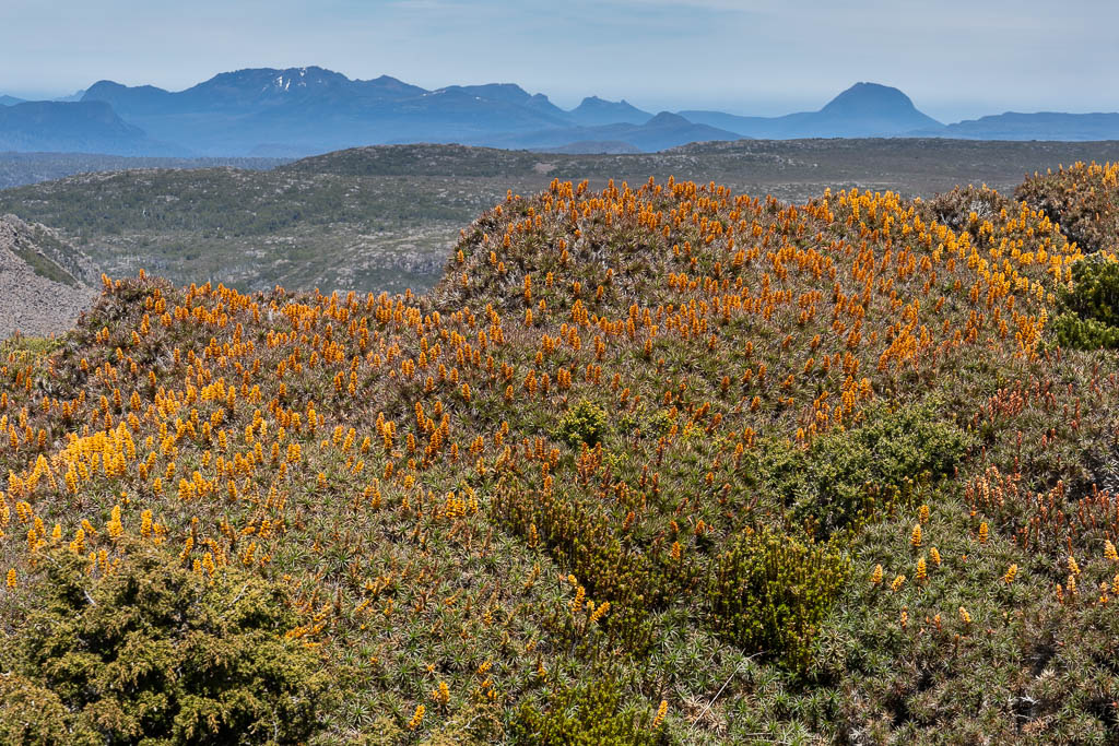 Above - Richea scoparia with the peaks of the Pelion Range