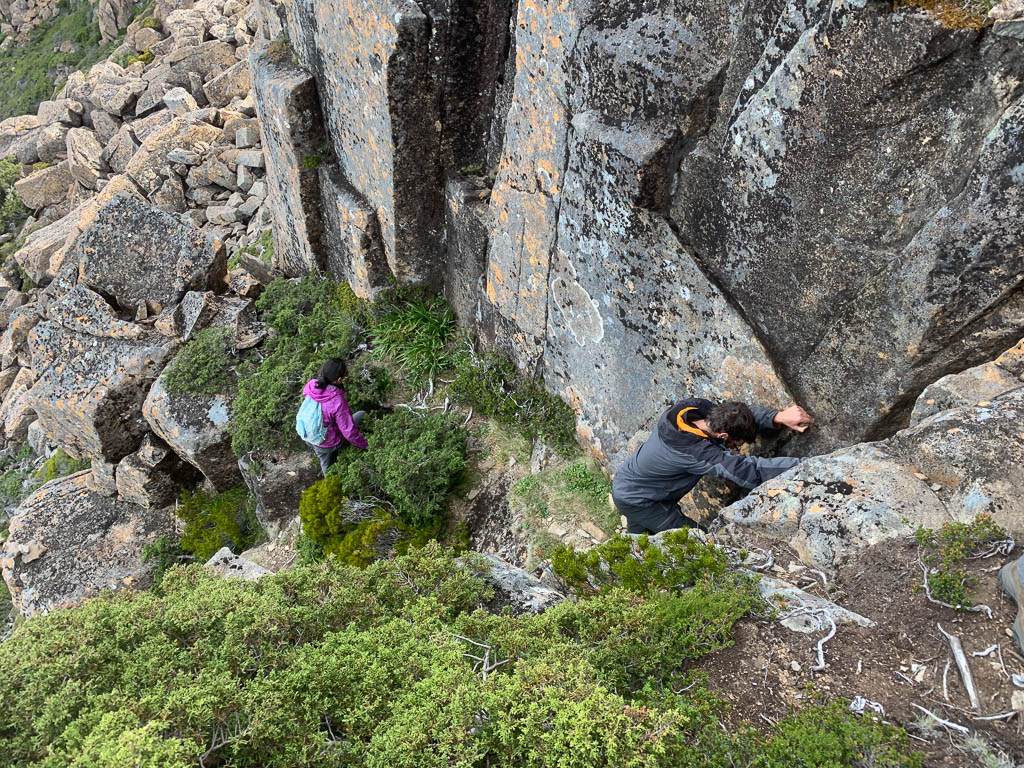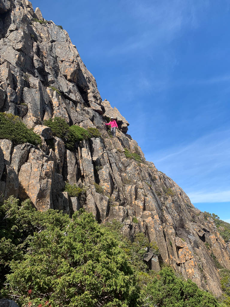 Above - Climbing up the dolerite boulders of Mt Massif