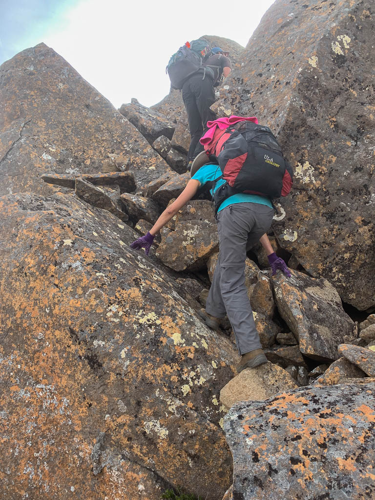 Above - Climbing up through the dolerite boulders of Falling