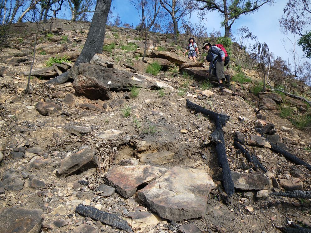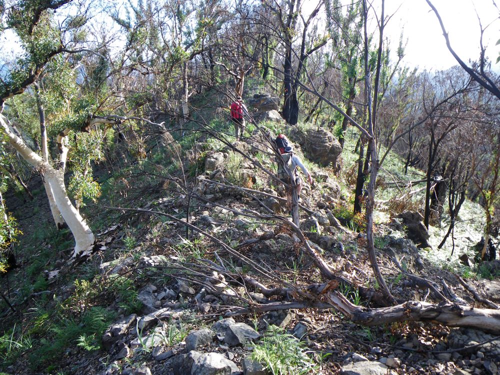 Above - Chuin Nee on the bushfire affected ridge off Toddy Head. Easy