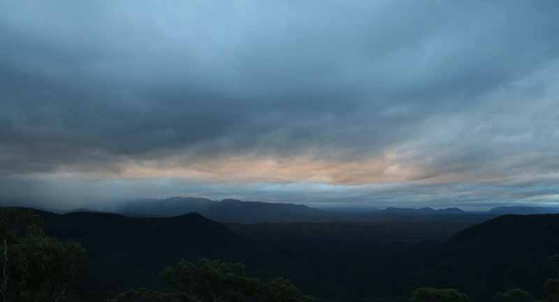 Above - Storm approaching Mt Cloudmaker and the High Gangerang Range.