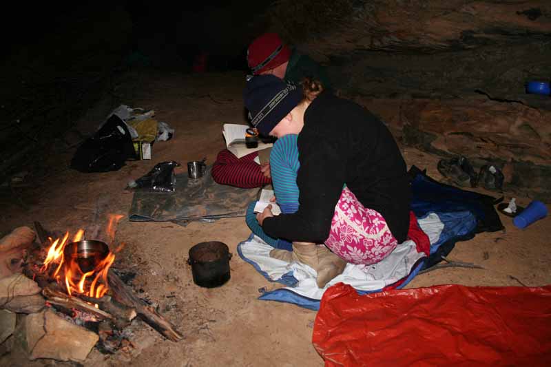 Above - Vanessa and Jo reading near our campfire in a nice dry camp cave