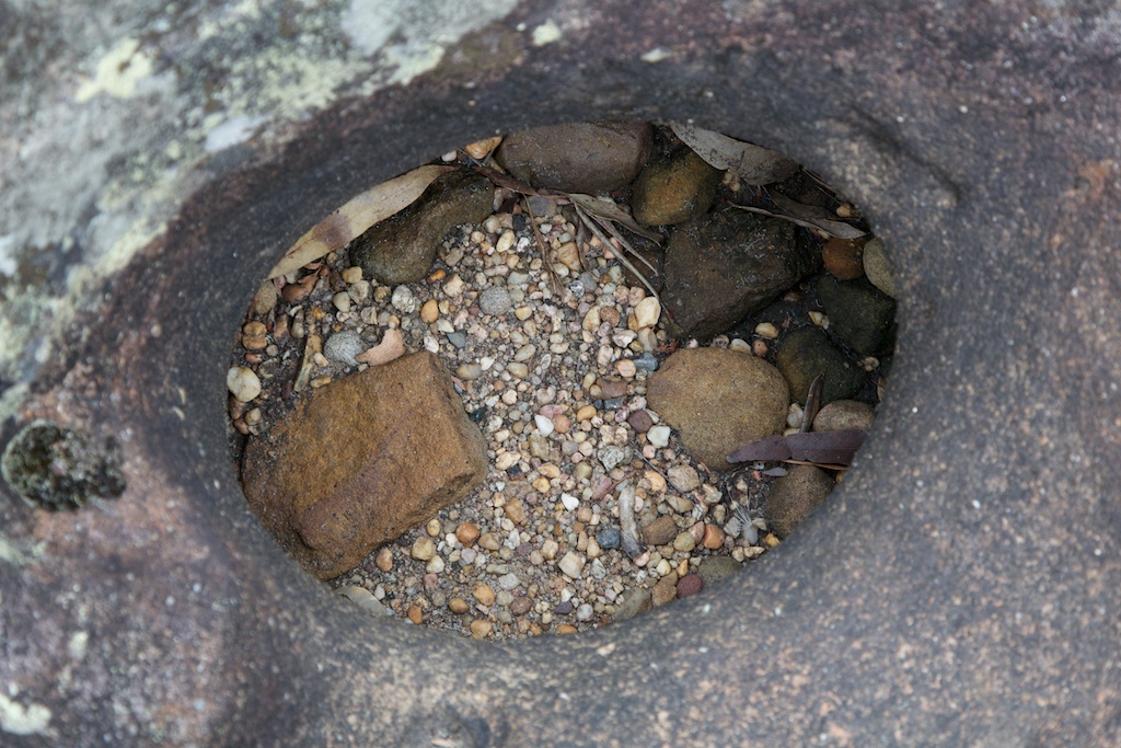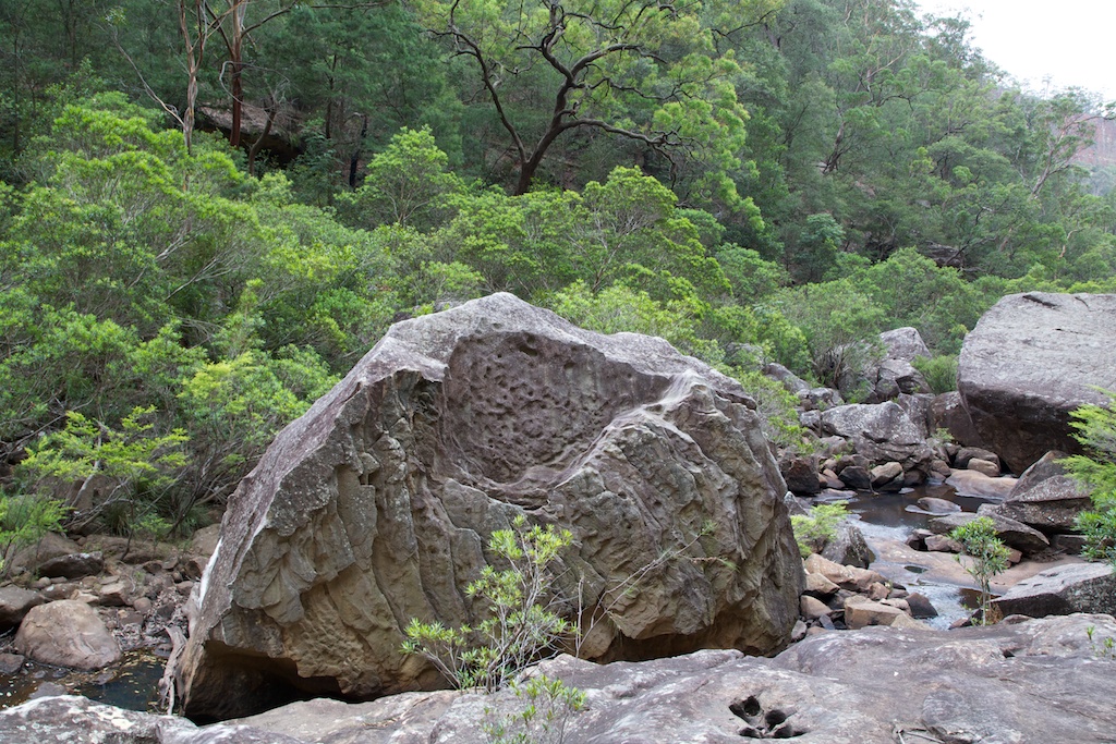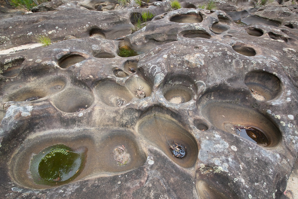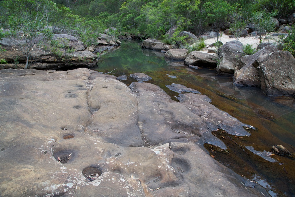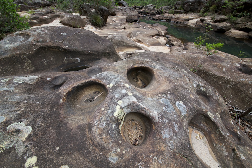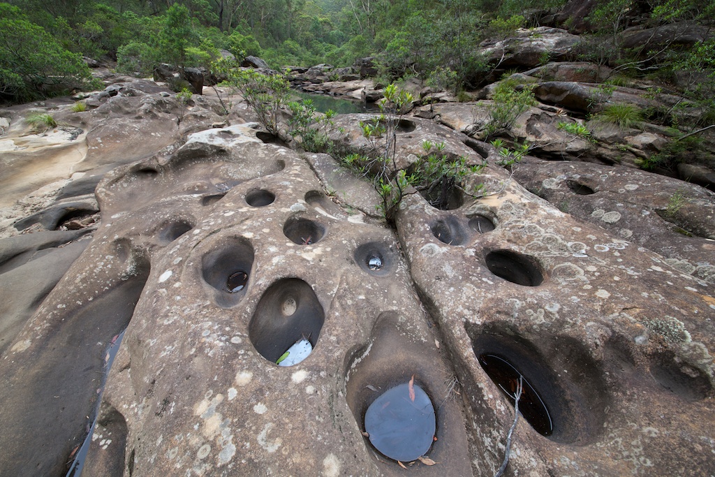 with huge numbers of swirl holes on the rock slabs. Further down at