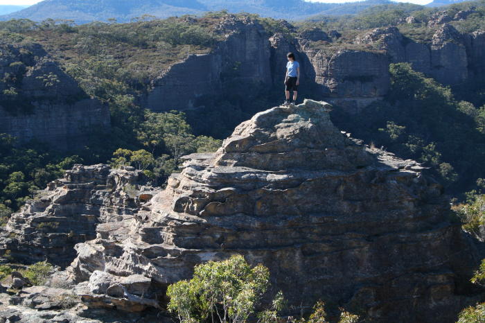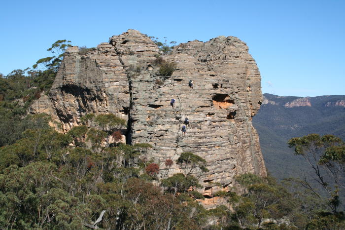 Above - scrambling, John watches while Stacey and Tom climb up the