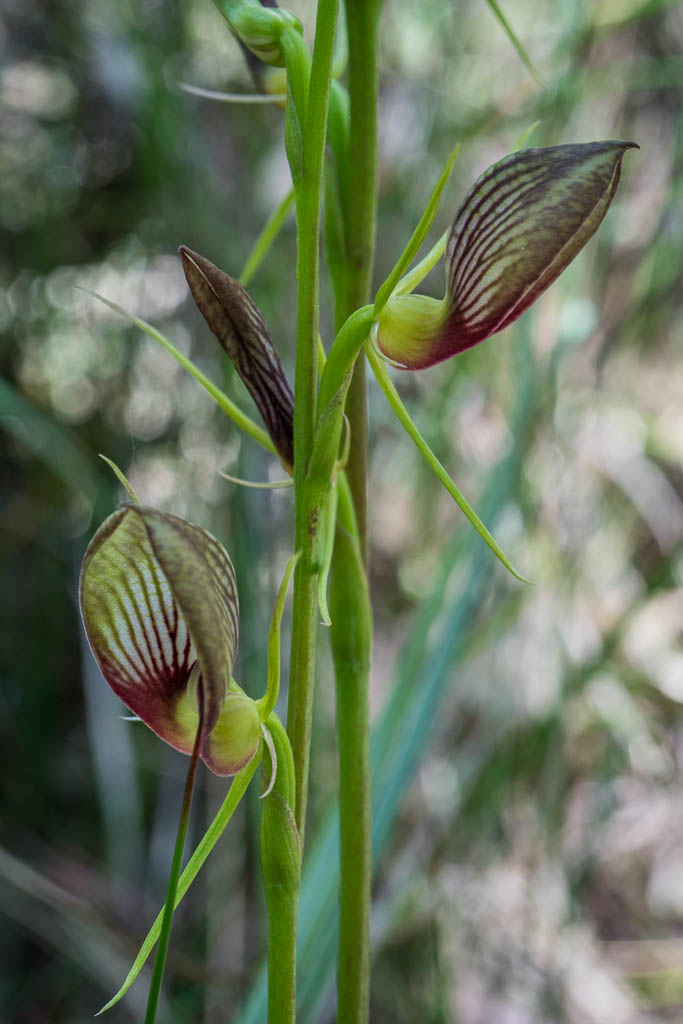 Above - Bonnet Orchid (Cryptostylis erecta)