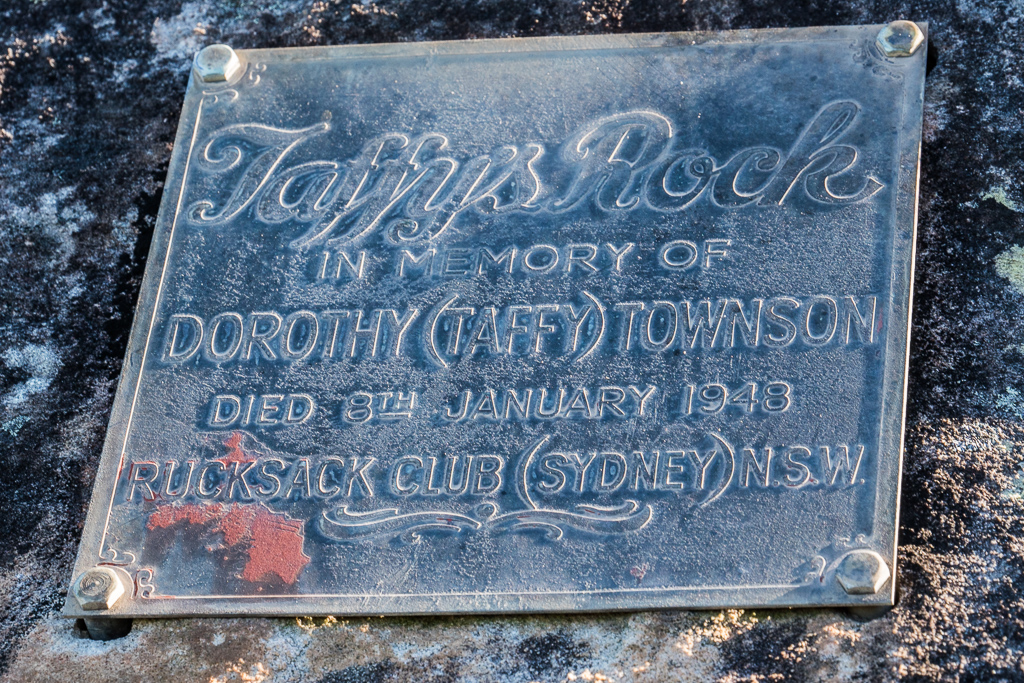 Above - Plaque at Taffys Rock. Taffy Townson died on the Overland