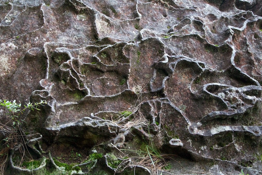Above - cliffs. The National Pass Track is visible on the half